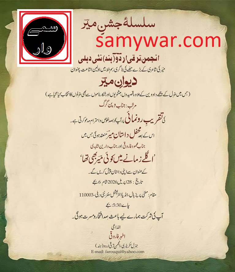 انجمن ترقی اردو (ہند) نئی دلی کی جانب سے اردو کے صف اول اور قدآور شاعر میر تقی میر کی شاعری کے بڑے حصے کی دیو ناگری رسم الخط میں اولین اشاعت کی گئی ہے۔ اس حوالے سے ‘دیوانِ میر’ کی باقاعدہ تقریب رونمائی 28 اپریل 2026 کو منعقد کی جا رہی ہے۔